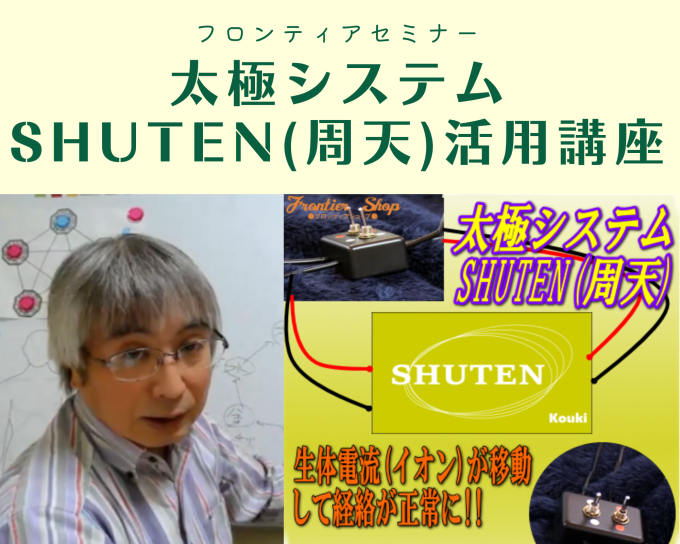 SHUTEN(周天)施術、波動水生成装置ZENWA、電磁波対策ソマヴェディックなどを展示・販売。
