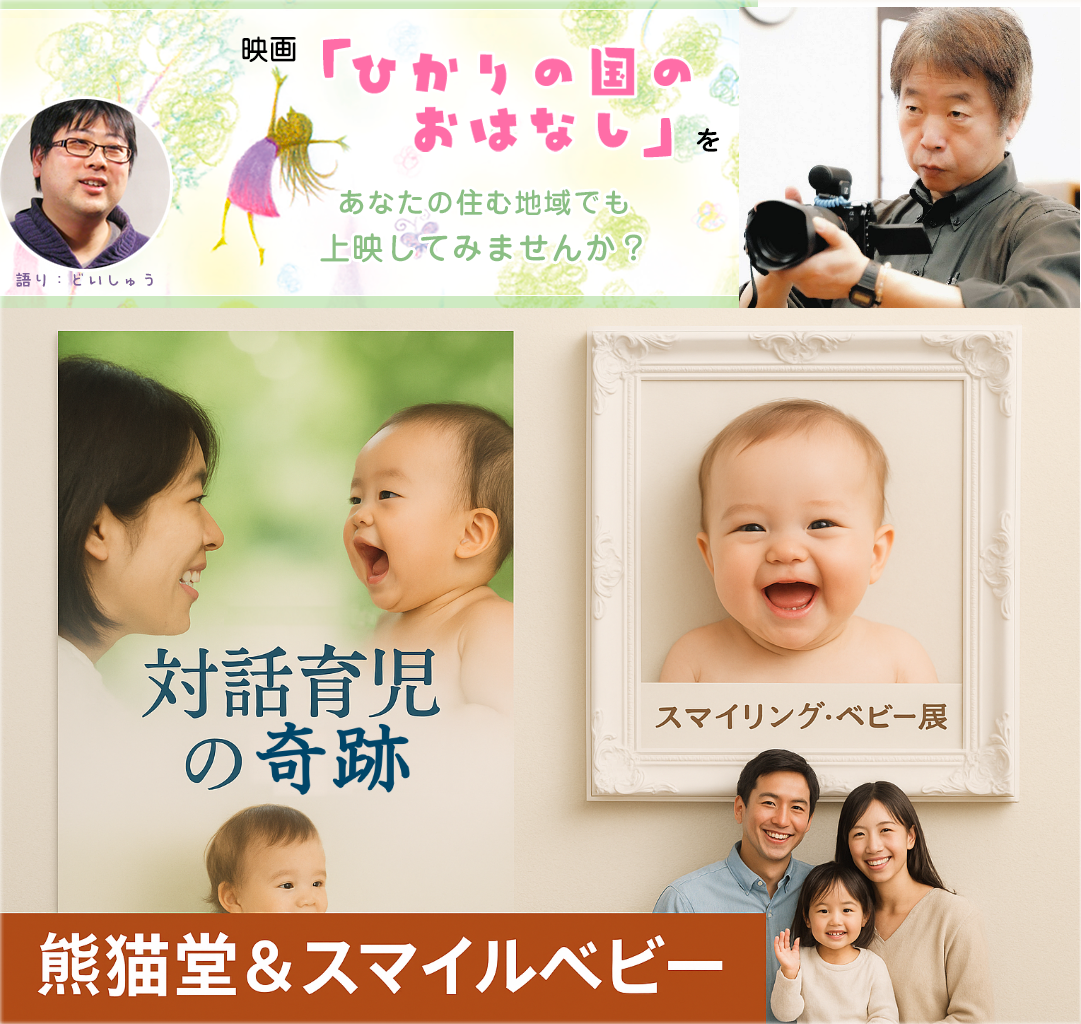 熊猫堂プロデュースによる“対話育児”ドキュメンタリー映画と、赤ちゃんの笑顔をテーマにした「スマイリングベビー展」を開催。